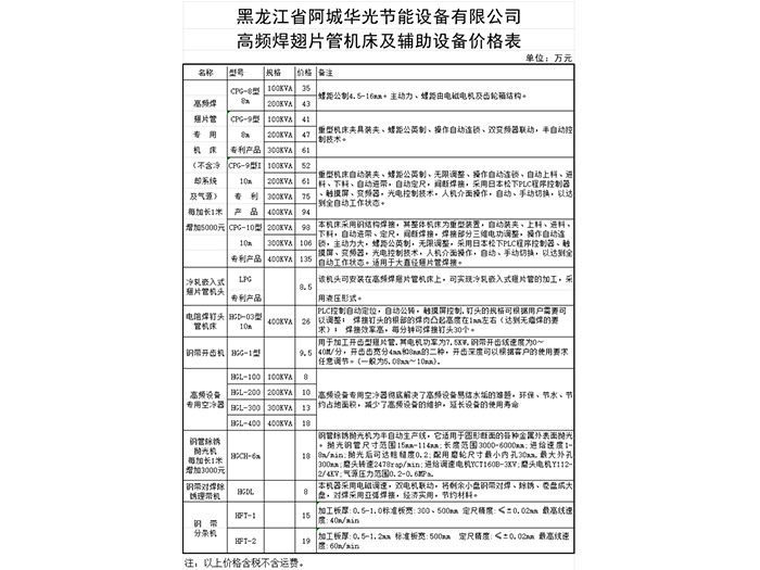 產(chǎn)品展示 Product display 翅片管設(shè)備系列 翅片管散熱器系列 換熱器系列 新品推薦 樣件 其他 翅片管機床及輔助設(shè)備價格表 ? COPYRIGHT?2019黑龍江省阿城華光節(jié)能設(shè)備有限公司 黑ICP備19002485號-1技術(shù)支持:風(fēng)騰電商 累計瀏覽量:244448 小時服務(wù)電話 139-0466-7326 翅片管設(shè)備,翅片管節(jié)能設(shè)備,翅片管機床設(shè)備,黑龍江翅片管機床,中國翅片管機床設(shè)備